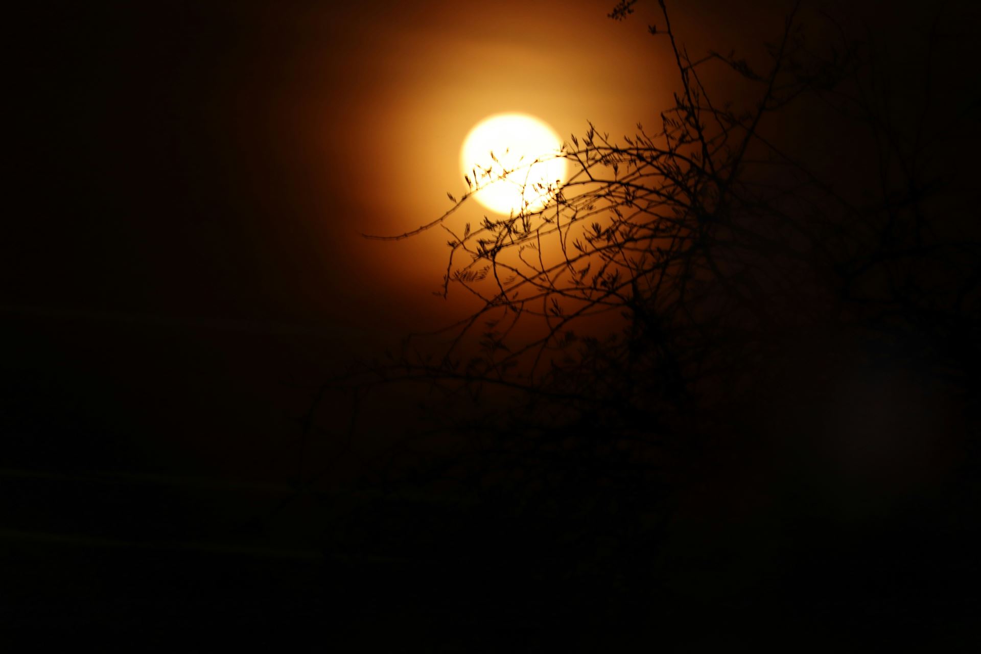 Klam posilují i fotografie. Teleobjektivy stlačují perspektivu a vytvářejí efekt, že Měsíc visí obrovský a nízko nad městem. Ve skutečnosti by se takto nikdy neukázal.